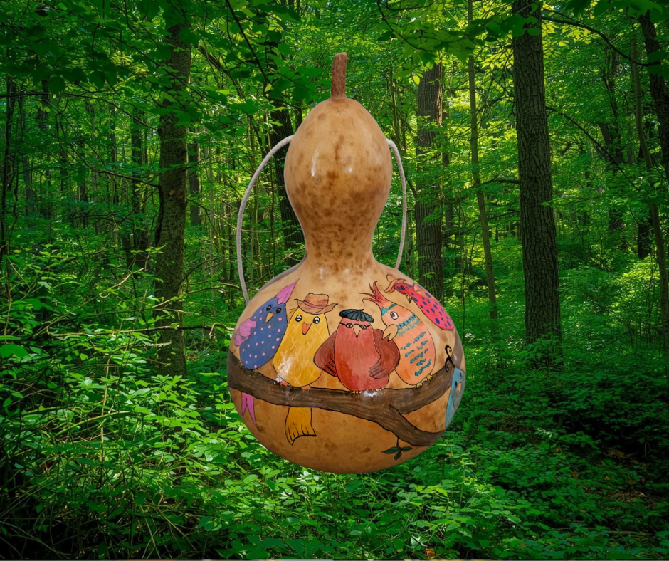 This one-of-a-kind hand-painted gourd birdhouse is basically a tiny fashion show for your feathered friends. Adorned with cheerful birds sporting jaunty little hats (because why shouldn’t they?), this whimsical gourd brings instant personality to any porch, garden, or tree branch. Each natural gourd is carefully painted by hand, making every birdhouse delightfully unique—no two hat collections are ever the same. It’s equal parts cozy cottage, backyard art, and conversation starter, perfect for bird lovers who appreciate a good sense of humor and a lot of charm. Hang it up and let the birds move in… stylishly.